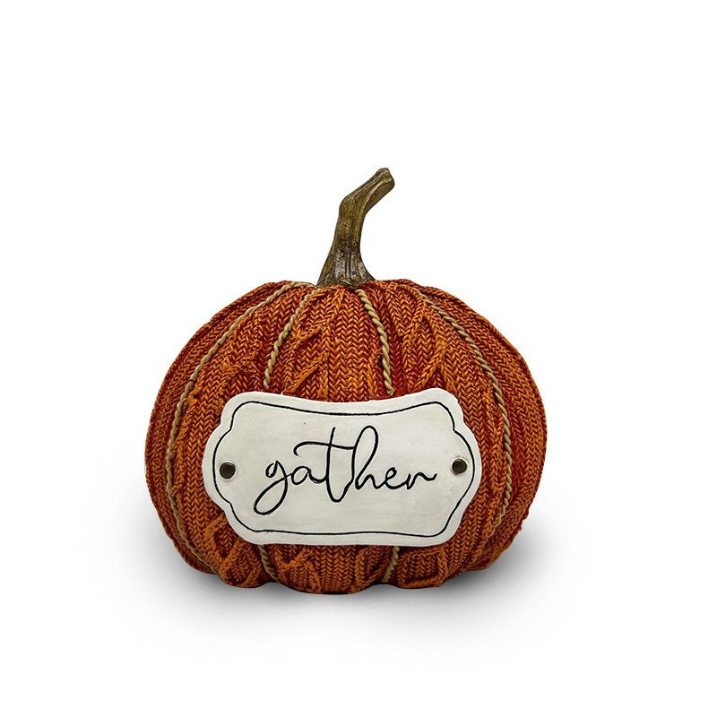 7.8”H Fall Harvest Faux Knitted Resin Pumpkin